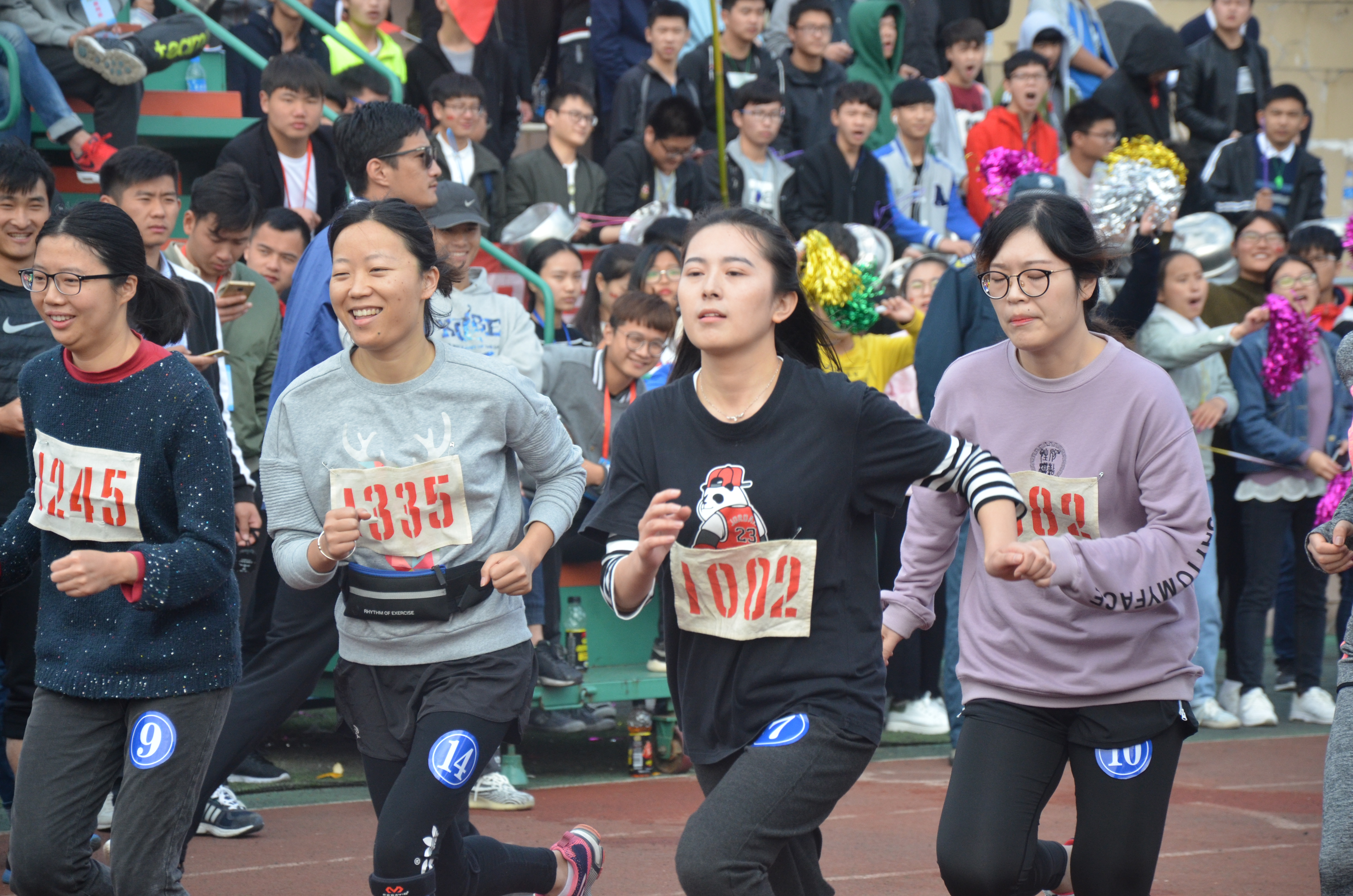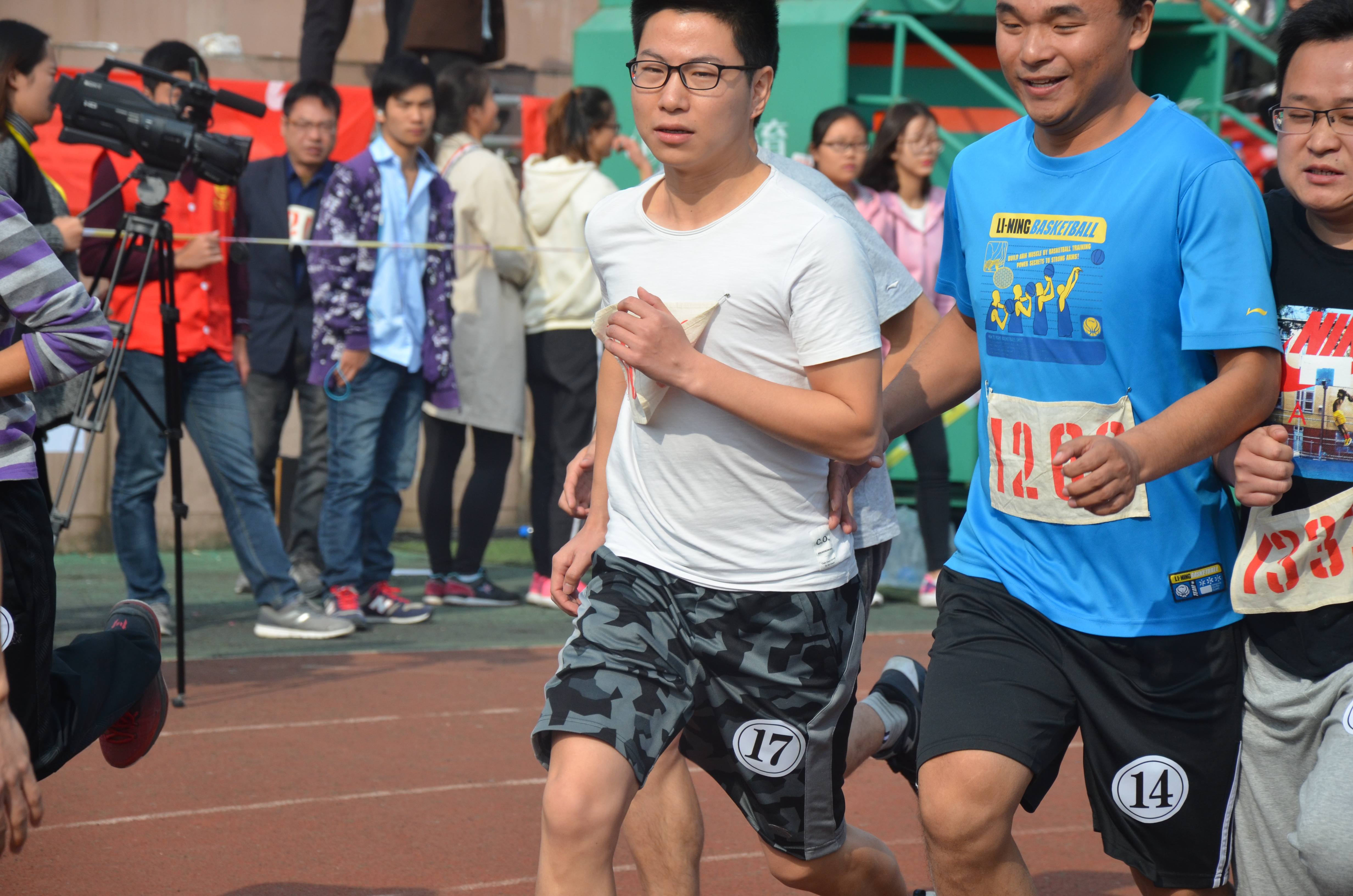 11月10日,正值运动会的第二天,文学院有年雪、陈媛媛、苏静及夏群山四位参赛教师。其中年老师和陈老师分别参加了女丙青年组400米,女丙青年组跳高;苏老师参加了女丙青年组400 米和800米两项;夏老师参加了男丙青年组400米和800 米。