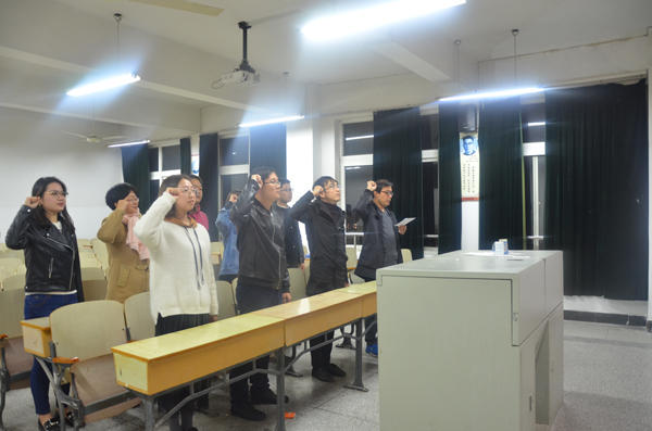 为进一步提高党员的党性修养,11月15 日下午,文学院党总支组织全体党员老师在文学楼2302教室举行重温入党誓词仪式。