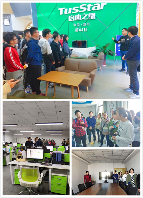 创业孵化公司“启迪之星”的媒体运营经理史志昂带领同学们参观了公司及其大学生孵化项目。“启迪之星”是清华大学的校办企业,目前市值2500亿元,成功孵化了“中文在线” 5000多家公司。滁州“启迪之星”公司成立于2016年,主要做孵化器方面的工作,尤其是面向大学生项目和公司的孵化,为创业大学生免费提供工位,水电全免,并有创业培训、宣传等配套服务,成功孵化了滁州市半卷书文化传媒、本佳文化传媒、后觅科技等公司。史志昂鼓励同学们积极创业,并表示“启迪之星”愿意为太阳成集团tyc33455cc官网有创业意愿的同学无偿提供创业指导和培训。