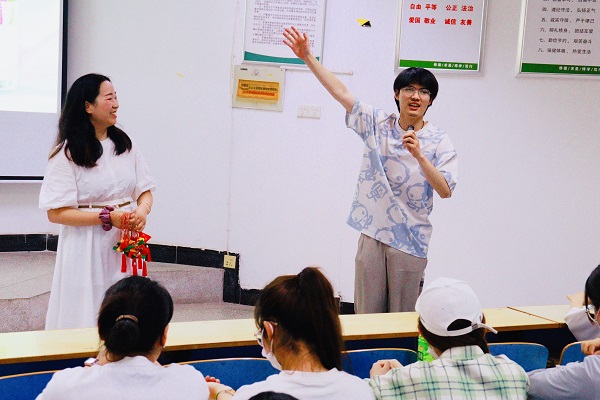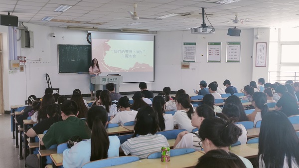 讲一个故事。辅导员老师以讲述端午的由来和端午故事为引,带领同学们学习习近平总书记关于文化遗产保护、文化传承发展的重要论述,引导同学们分享家乡端午特色活动,讲端午节故事、端午知识,感悟文化习俗,增强文传学子做好文化传承的使命感和责任感。