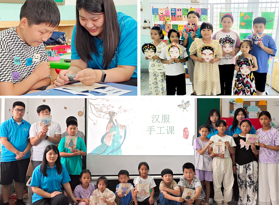 中国优秀传统文化是中华民族的文化瑰宝。支教队员们为撒播传统文化的种子,开设了“华裳盛典,汉服风华——千年文化传承”课程,对汉服的历史与演变、款式与穿着、影响与保护等进行讲解,开展了汉服折纸实践互动,旨在通过汉服文化的传授与实践,通过亲身经历与互动,帮助孩子认识和感受中华优秀传统文化的魅力。“创意脸谱绘国粹,非遗传承入童心”活动,帮助孩子们了解脸谱的文化内涵、艺术特色及绘制技巧等。支教成员向孩子们介绍了各种各样的脸谱、脸谱代表的京剧角色以及脸谱中的颜色所反映的人物性格。重点向孩子们介绍了著名的京剧人物形象,如包公、关羽、张飞等,引导他们根据经典人物的性格特点,理解京剧脸谱独特的表达方式。并通过脸谱手工活动来激发学生兴趣。在这种轻松愉快的氛围中,孩子们展现了对传统文化浓厚的兴趣,充分感受到传统文化的魅力,让中华文化基因在孩子们心中生根发芽、永续传承。