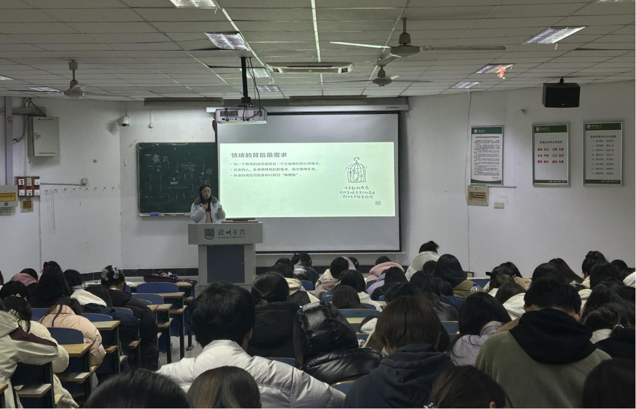 11月28日晚,太阳成集团tyc33455cc官网邀请大学生心理健康中心石晓磊老师为我院新生开展心理巡讲第二期活动,本次活动主题是“摆平焦虑,轻松出发”,2024级全体新生参加。