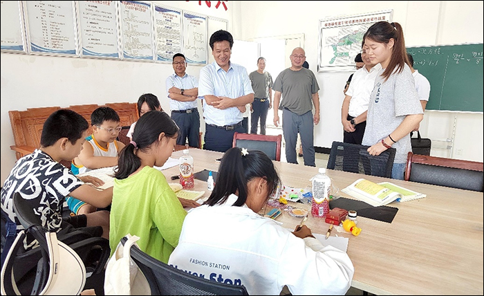 毕明福一行通过召开座谈会、深入支教大学生生活场所察看、深入支教课堂听课等多种方式,详细了解了支教大学生的生活情况和支教活动的开展模式、教学内容、群众反响等,对柳巷镇及桃溪村给予支教大学生生活照顾、工作支持表示感谢。