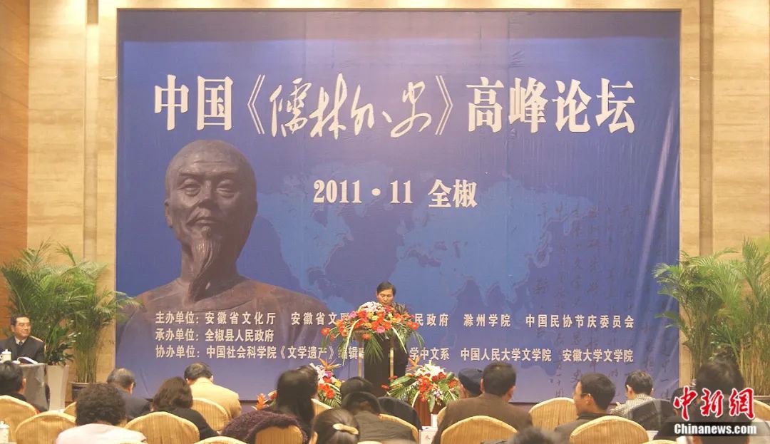 2011年11月25日至27日,吴敬梓诞辰310周年纪念大会暨中国《儒林外史》高峰论坛在吴敬梓故里安徽省全椒县举行。图为裘新江在论坛上发言。受访者供图