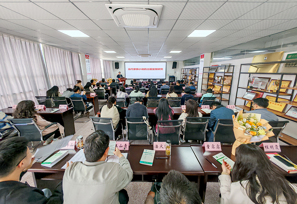 4月10日下午,文学与传媒学院举办第七期“文传论坛”,中文系副教授张太兵博士应邀作《当代家族小说的主题呈现研究》学术讲座。全院教师聆听了讲座。