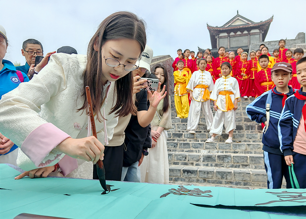 省书协会员许雨桐拱极门下挥毫泼墨。张懿婷 赵琦/摄