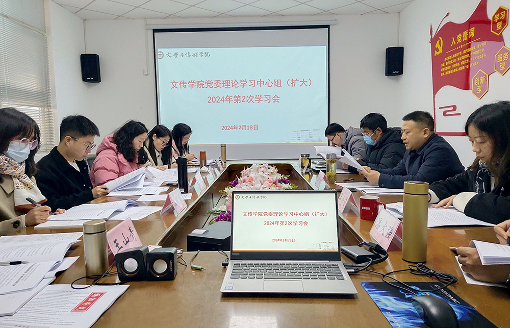 2月28日下午,文学与传媒学院党委书记王诗根主持召开学院党委理论学习中心(扩大)组2024年第2次集体学习会。院领导、党委委员、科级人员、各党支部书记参加了会议。