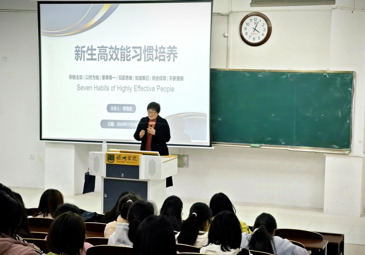 师教授强调,新生们应该主动地去适应大学生活,而不是被动地等待机会的降临。要在开始大学生活之前,先明确目标和方向,然后朝着目标努力前进。做事过程中,学会区分轻重缓急,把时间和精力放在最重要的事情上。人际交往中,注意寻求双方都能受益的解决方案。与人沟通时,先了解对方的需求和感受,然后再表达自己的观点,通过整合不同的观点和信息,实现更好的效果。最后,她表示,学习和成长是个循序渐进的过程,同学们要学会不断更新所见、所闻、所学,努力提升自己的能力和素养。